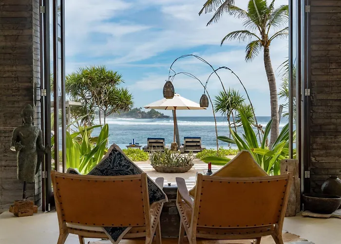 Villa Damai Nusa Lembongan à beira-mar está situada a 19 minutos a pé dos Lágrimas do Diabo e dispõe de piscina privada, bem como de pátio para os hóspedes relaxarem. Com terraço, esta propriedade está situada a uma distância de 3.5 km de Gamat Bay.
